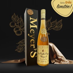 Alter Pflaumenbrand 70 CL 42% vol. Ein holziger Duft, eine unvergleichliche bernsteinfarbene Pracht: eine große Dame unter den Obstbränden. Der einzige unserer Obstbrände, der im Eichenfass reift.